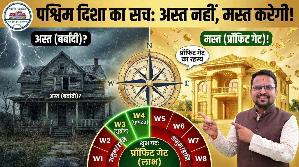 नमस्कार साथियों! वास्तु गौरव (Vastu Gaurav) के इस ब्लॉग में आपका स्वागत है। आज मैं आपके मन से पश्चिम दिशा का डर हमेशा के लिए निकाल दूंगा। वास्तु शास्त्र में पश्चिम दिशा ‘वरुण देव’ की है, जो लाभ और प्राप्तियों (Gains and Profits) के देवता हैं। आज हम जानेंगे कि कैसे पश्चिम दिशा आपको ‘अस्त’ नहीं बल्कि जीवन में ‘मस्त’ कर सकती है, और घर का असली “प्रॉफिट गेट” कहाँ होता है।